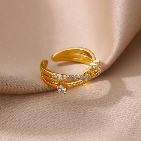 Gold Infinity Zircon Ring Adjustable Stainless Steel Wedding Jewelry for Women
