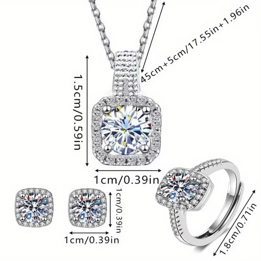 Luxury 3PCS Zircon Jewelry Set – Shiny Geometric Necklace, Earrings & Ring