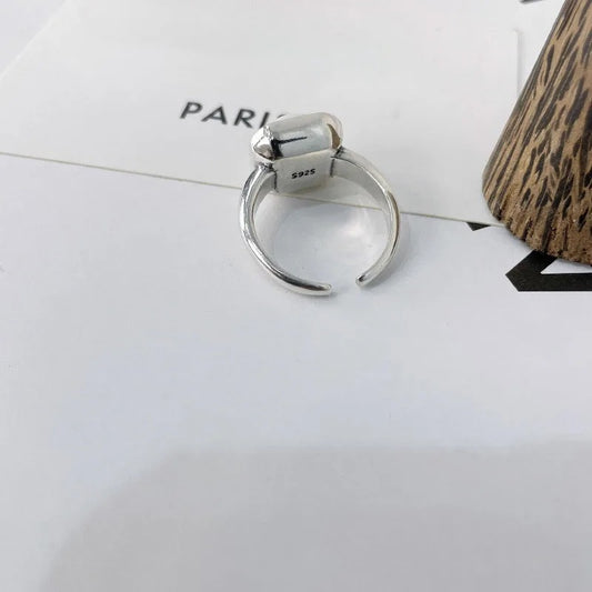 925 Sterling Silver Geometry Pearl Ring for Women Girl Gift Korean Versatile Finger Jewelry