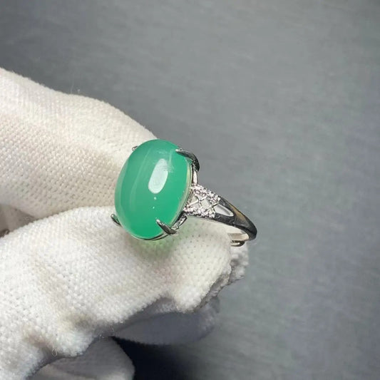 Vintage Natural Chalcedony Ring For Women Stainless Steel Simple Fine Jewelry Stone Gemstone Classic Style