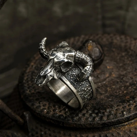 Vintage black goat open ring grams dark demon satanic niche exaggerated personality male finger ring