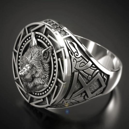 Huitan Viking Nordic Mythology Giant Wolf Men Ring Defense Totem Wolf Fashion Hip Hop Rock Unisex Finger Ring Punk Gift