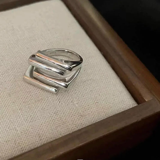 Sterling Silver Irregular Wave Ring Stackable Adjustable for Women