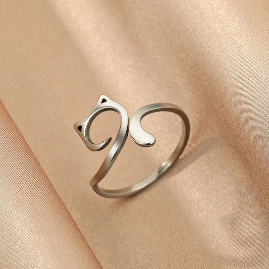 Cute Cat Stainless Steel Ring Lovely Stacking Jewelry for Women & Girls