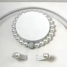 3PCS Imitation Pearl Jewelry Set Silver Crystal Fireball Necklace, Bracelet & Earrings for Brides