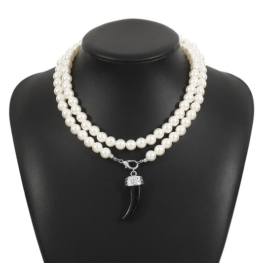 Vintage Women Jewelry Personality Horn Pendant High Quality Pearl Beaded Necklaces 2025 Trend Holiday Party Accessories