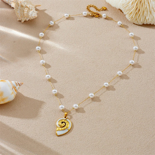 316L Stainless Steel Golden Sea Shells Conch Pendant Pearl Necklace Women New Fashion Neck Chain Jewelry Party Gift