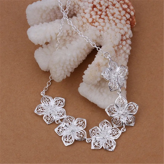Hot sell cute women lady wedding silver color retro charm flowers Necklace Fashion trends Jewelry Gifts charms
