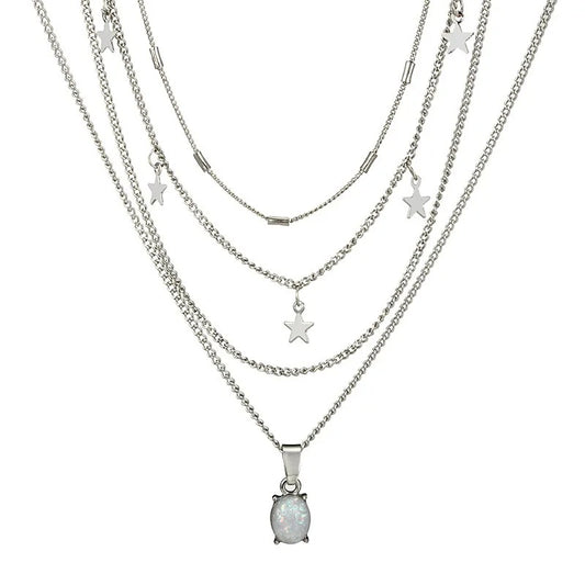 European And American Fashion Classic Beautiful Bohemian Simple Crystal Pentagram Geometric Oval Pendant Multilayer Necklace