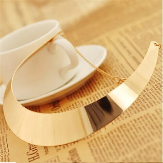 Europe Street Wide Gold Necklace Women Simple Metal Collar Jewelry