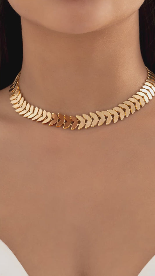 Vintage V Sequins Chain Choker Necklace for Women Punk Gold Color Leaves Chain Necklaces Jewelry Gift