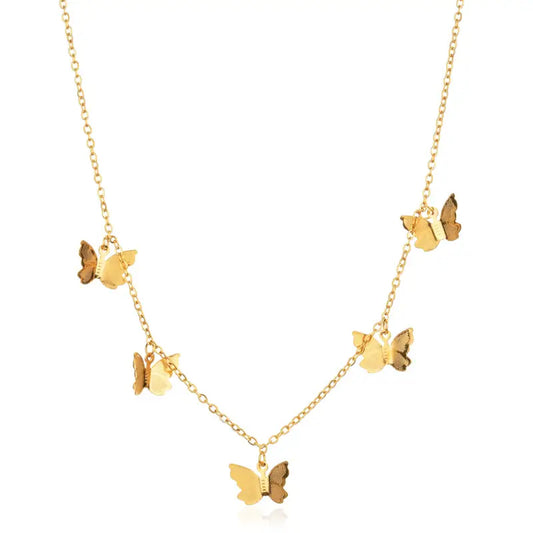 Punk Butterfly Choker Necklace Gold Stainless Steel Statement Jewelry for Women