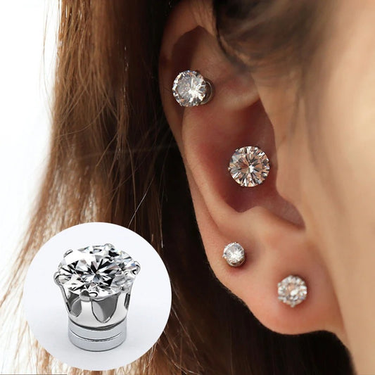 Women & Men Non-Pierced Magnetic Crystal Stud Clip Earrings