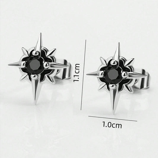 Black CZ Star Stud Earrings Hip Hop Silver Unisex Jewelry