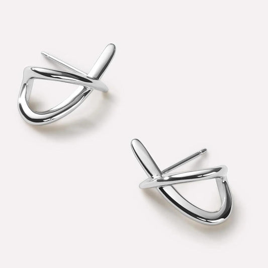 Silver Korean Cross & Saturn Planet Stud Earrings Women Jewelry
