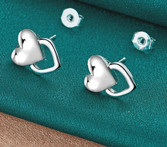 Heart Stud Earrings 925 Silver Engagement Wedding Jewelry