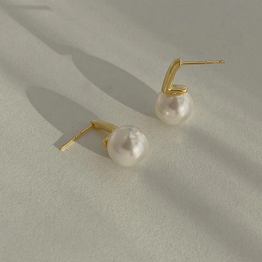 Elegant 925 Silver Pearl Earrings Geometric Style Women