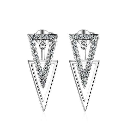 Women’s Silver Double Triangle Zircon Stud Earrings Luxury Jewelry