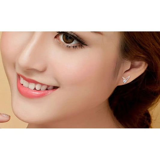 New 925 Sterling Silver Angel Wings Zircon Stud Earrings