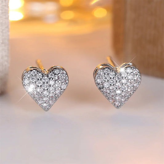 Versatile White Zircon Heart Stud Earrings Wedding Women