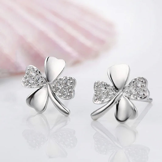 925 Sterling Silver Heart & Lucky Clover Stud Earrings Women