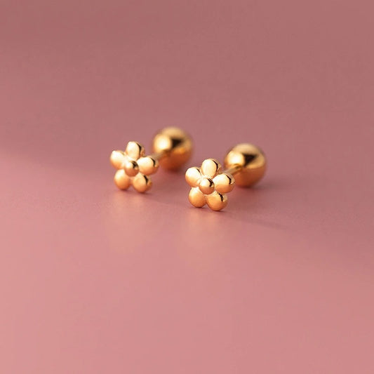 925 Sterling Silver 18K Gold Flower Bead Stud Earrings Women