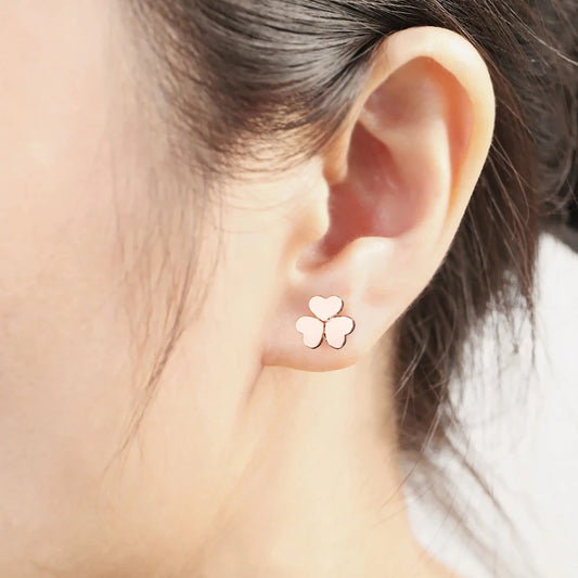 Classic Heart Leaf Rose Gold Color Simple Stud Earrings Fashion Jewelry For Girl Gift