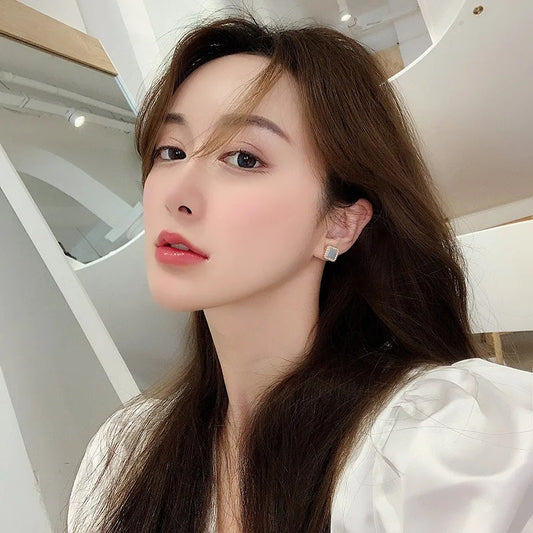 Women’s Enamel Blue Square Pearl Stud Earrings Trendy Gift Jewelry
