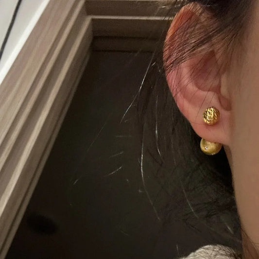 Cute Gold Round Ball Stud Earrings Inlaid with Small Zircon Women