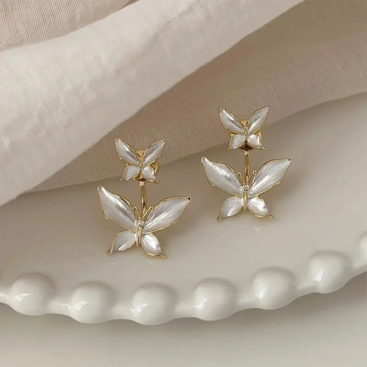 Women Double White Butterfly Stud Earrings Temperament Fashion Gift
