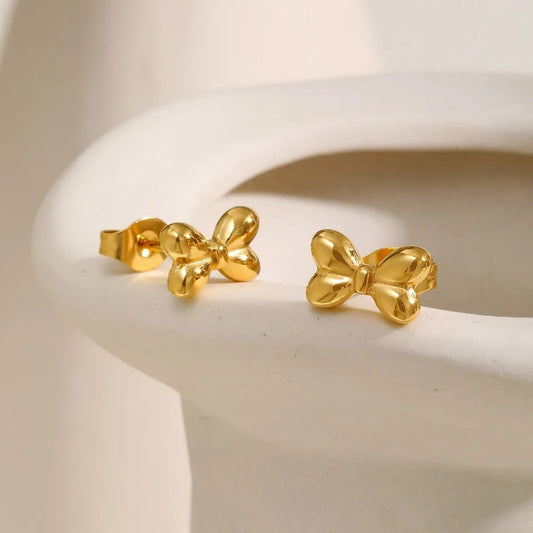 Stainless Steel Bowknot Earrings Women Gold Mini Stud Jewelry