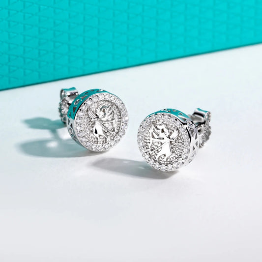 925 Silver Moissanite Stud Earrings Angel Design Unisex Jewelry