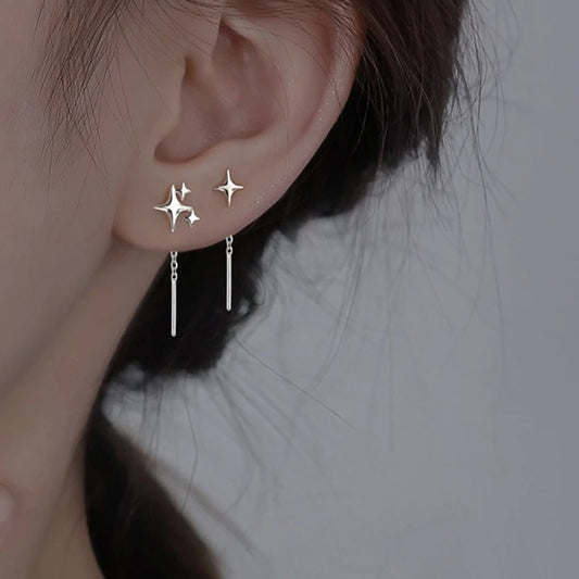 2025 New Korean Star Ear Wire Tassel Thread Chain Climb Star Pendants Drop Earrings Women's Straight Hanging Earings Jewelry