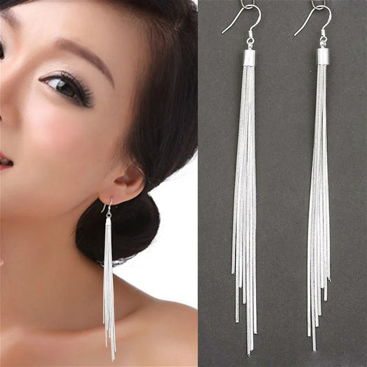 Elegant Jewelry Fashion Women Noble Tassels Silver Plated Long White Hook Dangle Chain Earrings
