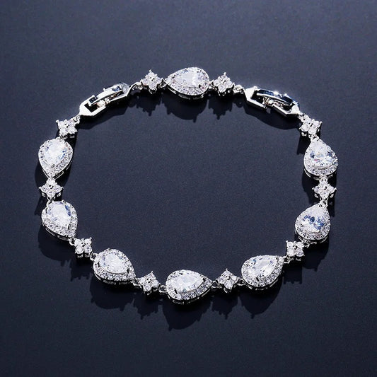 ZAKOL Classic Geometric Water Drop CZ Bracelet for Women Bridal Gorgeous Buling Zircon Party Wedding Jewelry