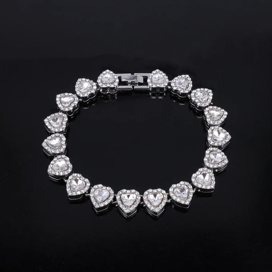 New Hip Hop Tennis Chain Bracelet Necklace Shiny Heart Rhinestone Fashion Rock Party Jewelry Set