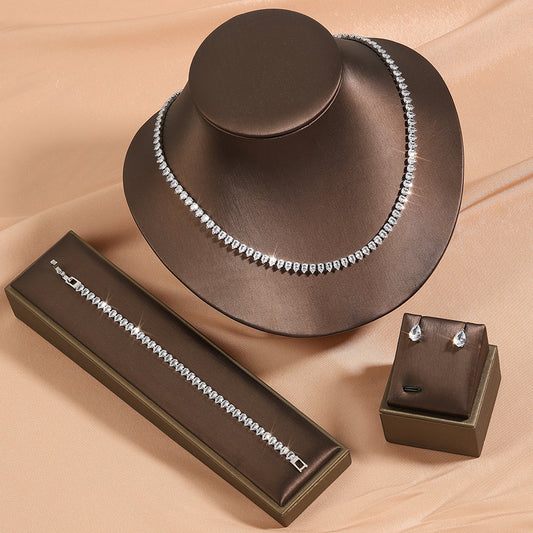 ZAKOL Water Drop Zirconia Jewelry Set Necklace, Earrings & Bracelet