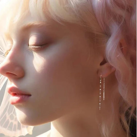 Threader Earrings for Women Hypoallergenic Silver Color Long Dangle Earrings Austria Crystals Drop Earrings