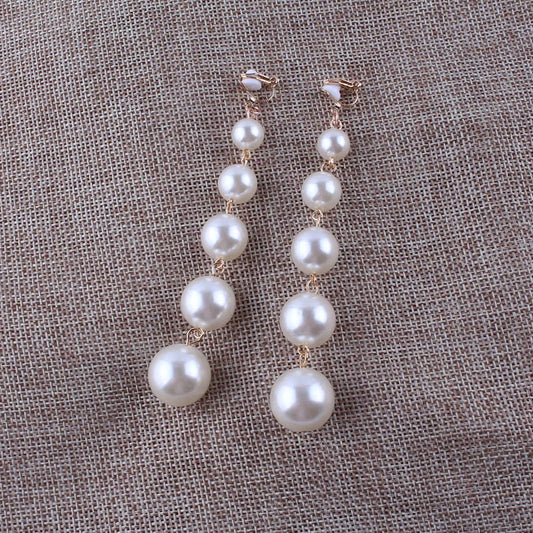 JIOFREE new design Trendy long Big Simulated Pearl Clip on Earrings Pearls String Statement Earrings For Wedding Party Gift