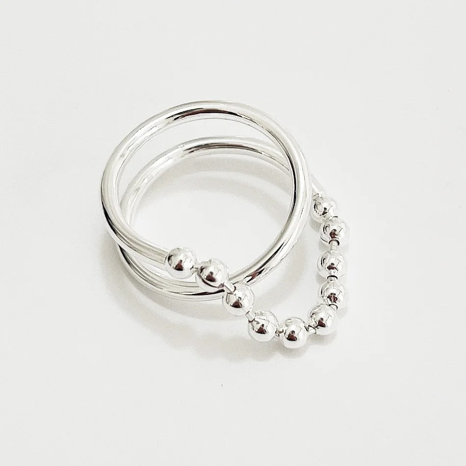 100% Solid 925 Sterling Open Chain Ball Rings For Women Gold Plated Trendy Retro Anillos Party Gifts Accessories