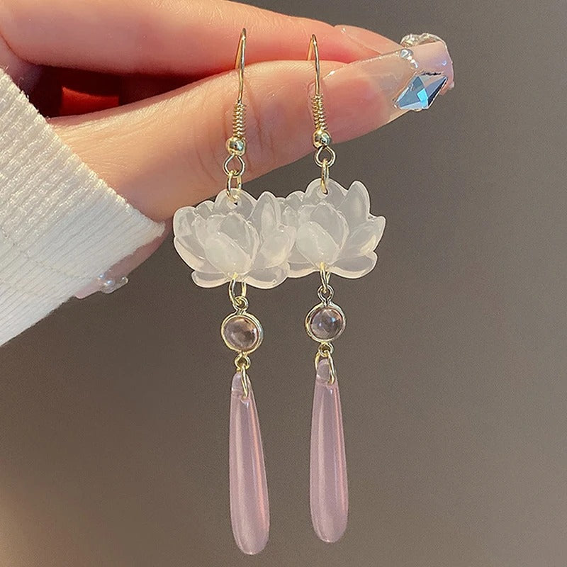1Pair Chinese Style Lotus Pendant Tassel Earrings For Women Girls Classic Retro Elegant Long Drop Earrings Jewelry Gifts