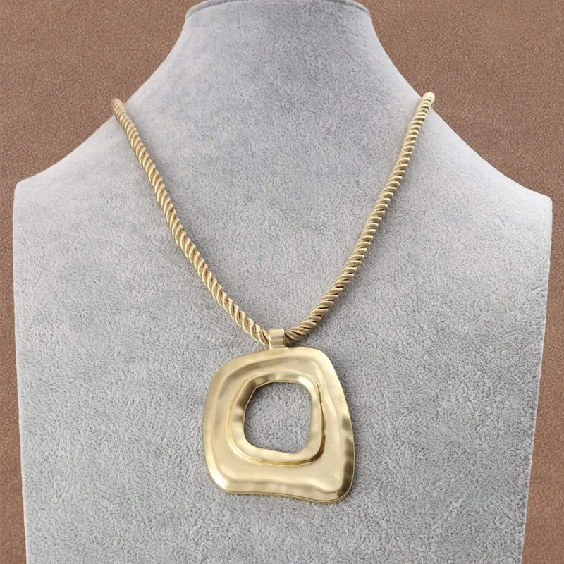 Set of 2 minimalist necklaces with hollowed-out square pendants