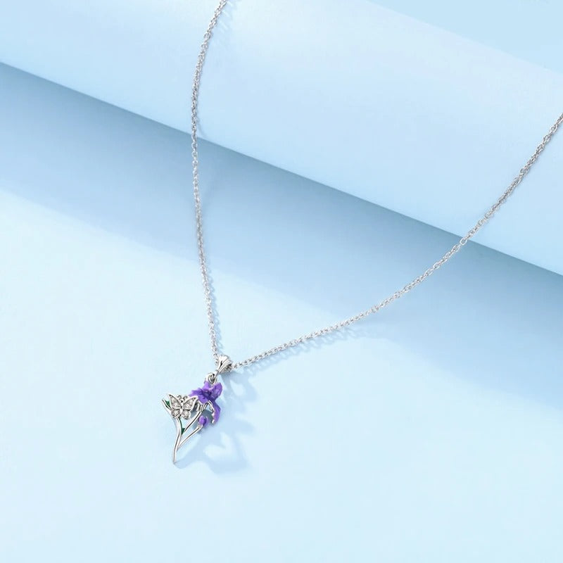 2025 New 925 Sterling Silver Necklace Zircon Purple Iris Flower Simple Necklaces for Women Anniversary Birthday Jewelry Gift