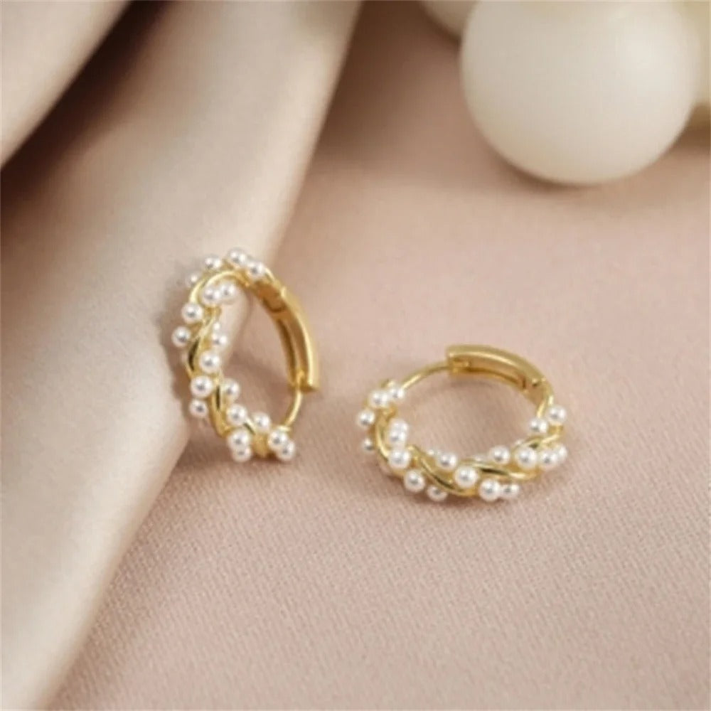 2025 New Fashion Korean Simple Temperament Circle Pearl Small Versatile Hoop Earrings for Women Party Jewelry Gifts