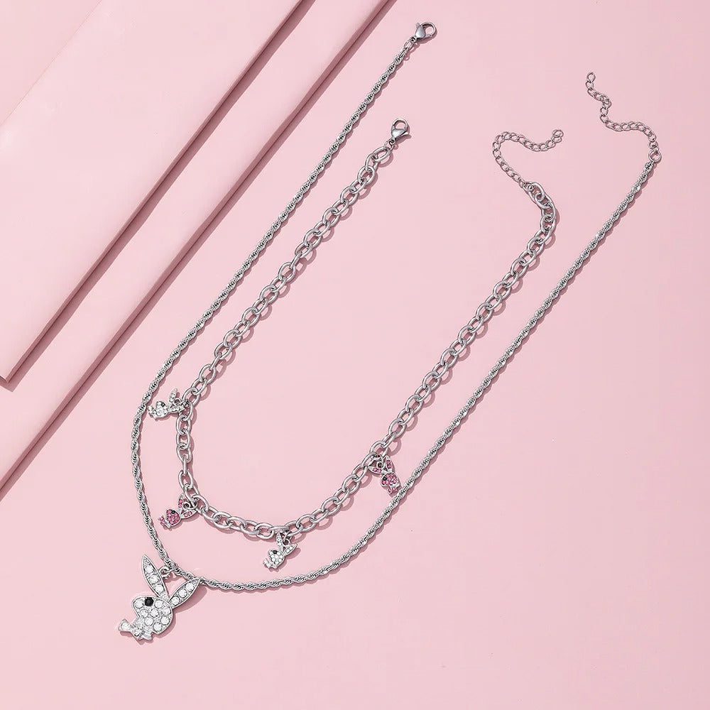 2025 New Fashion Net Red Zircon Rabbit Ladies Necklace Hip Hop Rock Pendant Necklace White Rabbit Jewelry Girl