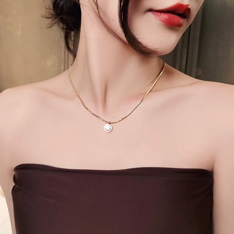 2025 New Simple Design Shiny Zircon Pendant Stainless Steel Gold Color Necklace Girls' Collar Chain Fashion Jewelry For Women