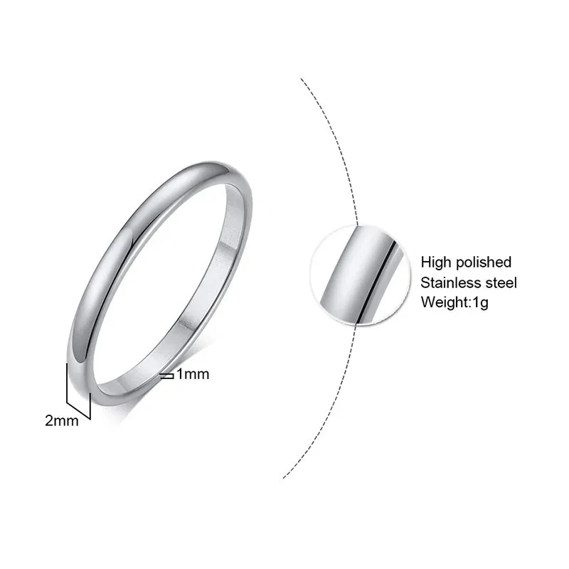 2mm Width Stainless Steel Ring for Girls Women, Gold-color / Silver-color, Tail Ring for Wedding, Thin And Simple Concise Style
