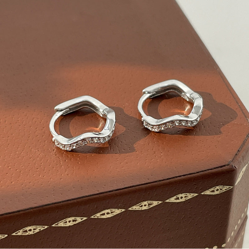 Upgrade your jewelry collection with these chic and stylish Minimal Wave Hoop Earrings. Crafted from premium stainless steel, these small huggie earrings feature a sleek wave design adorned with sparkling crystal zirconia, adding a subtle touch of elegance to any outfit.
