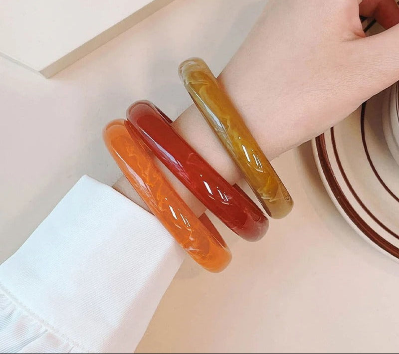 Set includes 3 vintage-style resin and acrylic bangles