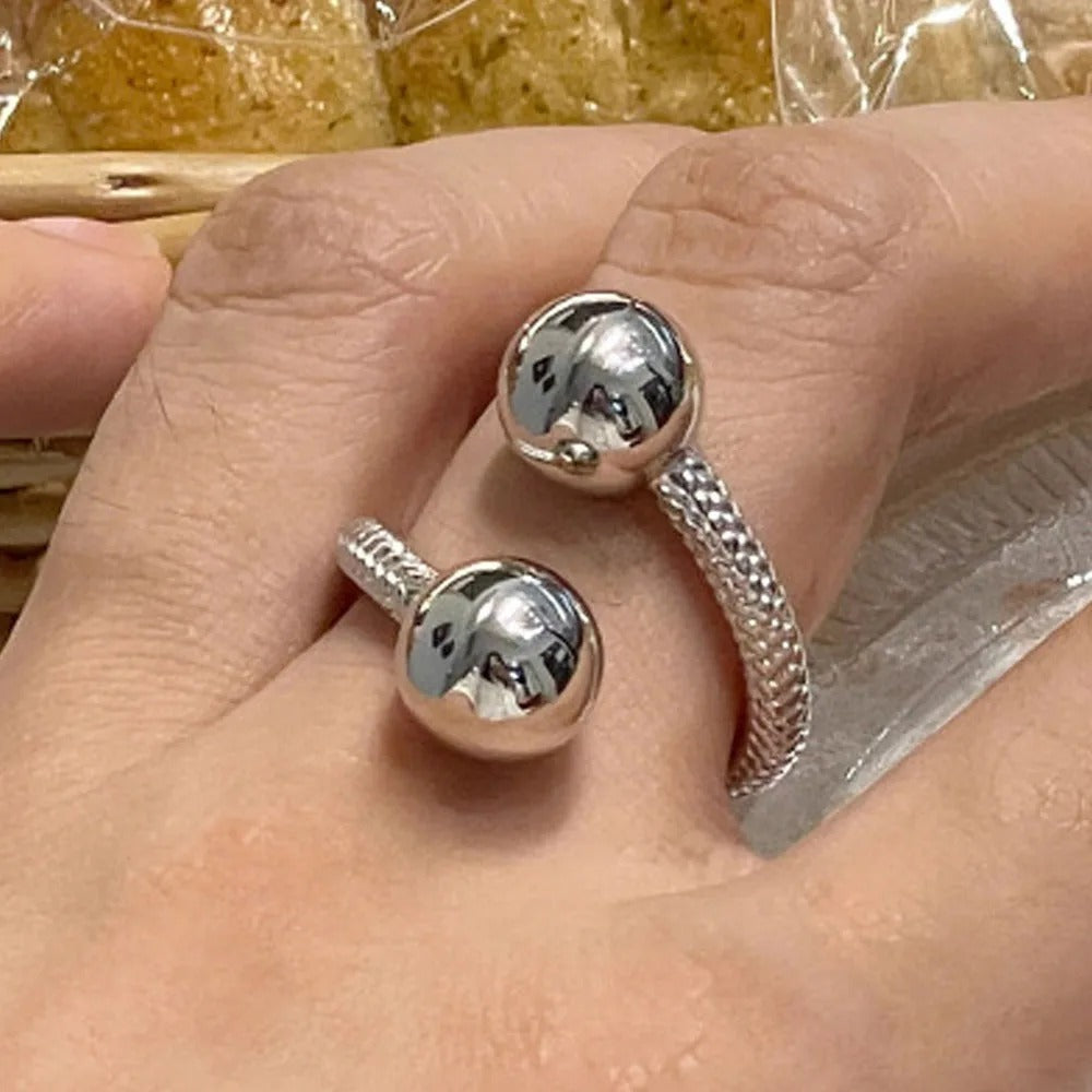 925 Sterling Rings for Women Fashion Geometric Handmade Irregular Double Balls Ring Party Christmas Gift